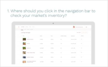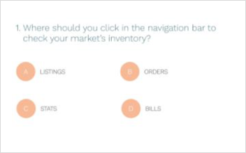 Here’s a second example. You work for an online marketplace company that intends to use training to reduce support costs. The goal of your course is to teach customers how to create and manage their first listing. Instead of creating a multiple-choice question that asks, “Where should you click first in the navigation bar to view your inventory?,” you can create a slide with a screenshot of the admin panel and navigation bar and add clickable hot spots on the screenshot. One hot spot is linked to the slide informing the learner that their response is correct, while the others are linked to a slide with a “Try again” message. In this scenario, learners are applying what they learned from the content directly to a real-world scenario—which is ideal!