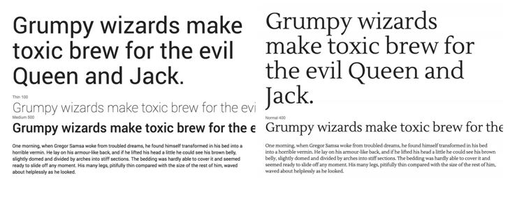 Both examples below make for great body text due to their legibility. On the left, is a sans serif font called Roboto and on the right, is a serif font called Lustria.